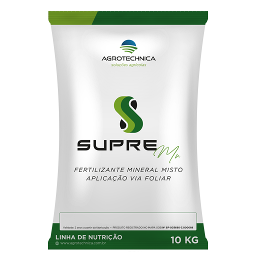 SUPRE Mn® é um fertilizante para aplicação via foliar, especialmente formulado para atender os períodos de grande demanda nutricional, como o final dos estádios vegetativos e início da fase reprodutiva. Contém complexantes e aditivos que aumentam a absorção dos nutrientes, além de melhorar a compatibilidade com outros componentes da calda.